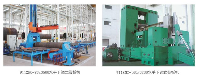 性能特點: W11XNC系列水平下調式卷板機,三輥均為主動輥,上輥的升降和下輥的水平移動為液壓驅動,主油缸下置式,同步由計算機控制,同步精度±0.15mm。該設備結構緊湊,外形尺寸小,卷制制品精度高,特別使用于冷、熱卷卷板機。